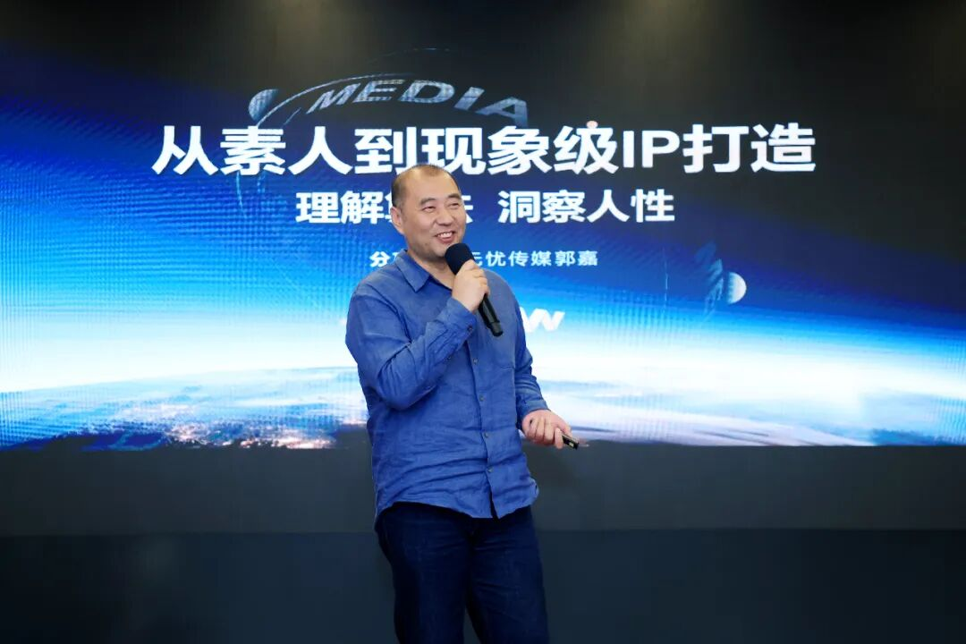 郭嘉以“从素人到现象级IP打造:理解算法 洞察人性”为主题做了分享。他表示流量是影响力拓展速度的标尺,专业指标是内容生命力长度的标尺,平台选择是生态力匹配度的标尺,用户门槛是影响力抵达范围的标尺。
