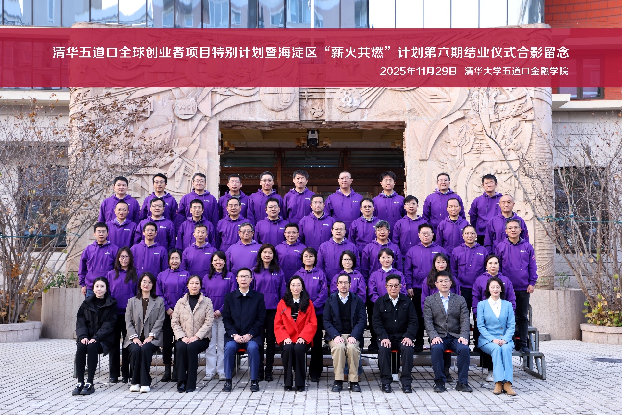11月29日,清华五道口全球创业者项目特别计划暨海淀区“薪火共燃”计划第六期在清华大学五道口金融学院圆满结业。中关村科学城管理委员会副主任、海淀区人民政府副区长唐超,清华大学五道口金融学院副院长、讲席教授田轩,清华大学五道口金融学院院长助理、长聘副教授刘碧波,中关村科学城服务体系建设处处长王玉霞,中关村科学城管委会服务体系建设处副处长韩东风,清华大学金融科技研究院院长助理、全球创业者项目运营负责人刘健与同学们合影留念。
